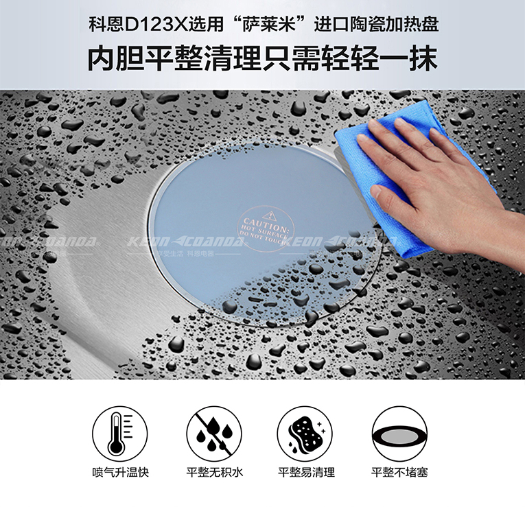 科恩智能蒸烤消一體集成灶的蒸烤箱通過“薩萊米”陶瓷加熱盤產(chǎn)生蒸汽,并滲入食物中來使食材熟透,蒸烤箱底部有一個(gè)光滑平整的加熱盤,隱形導(dǎo)流管將外置水箱中的水引流至加熱盤內(nèi),加熱盤不斷升溫,到一定溫度是,盤內(nèi)的水就會蒸發(fā)成水蒸汽,蒸汽在箱內(nèi)彌漫,滲入食物中。蒸箱、烤箱作為常用的家電,被嵌入集成灶箱體,不僅僅能夠節(jié)省空間,更能夠滿足不同用戶的不同烹飪需求!