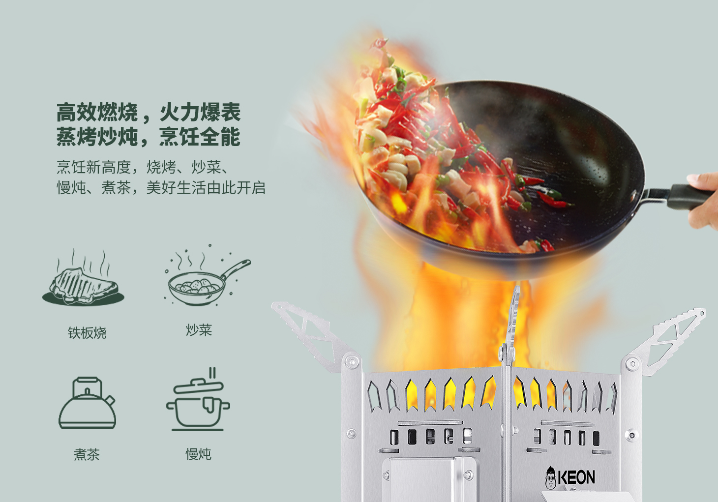 傳統爐灶的嗆鼻濃煙模糊了山色,科恩提供全新解決方案,火箭爐S12設置3D繞流供氧系統。科學供養(yǎng),猛火無煙,可調支撐腳,穩(wěn)立碎石坡地。熱效率超傳統爐具250%,省柴省心更省空間,從野餐到探險全覆蓋。
