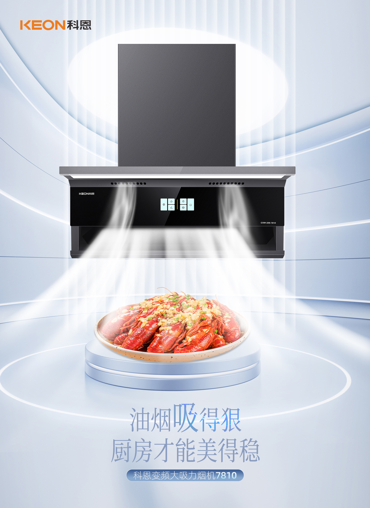 科恩旗艦款大吸力油煙機7810,兩檔吸力+爆炒模式,輕松下廚零負擔。智能自清洗去除頑固油污,延時凈煙自動清除余味,守護廚房每一寸清新。攜手科恩,煥新生活。科恩7810凈煙有魄力廚房方寸皆自由。這個舊廚煥新季,換一臺會思考的煙機給廚房一次溫柔革命