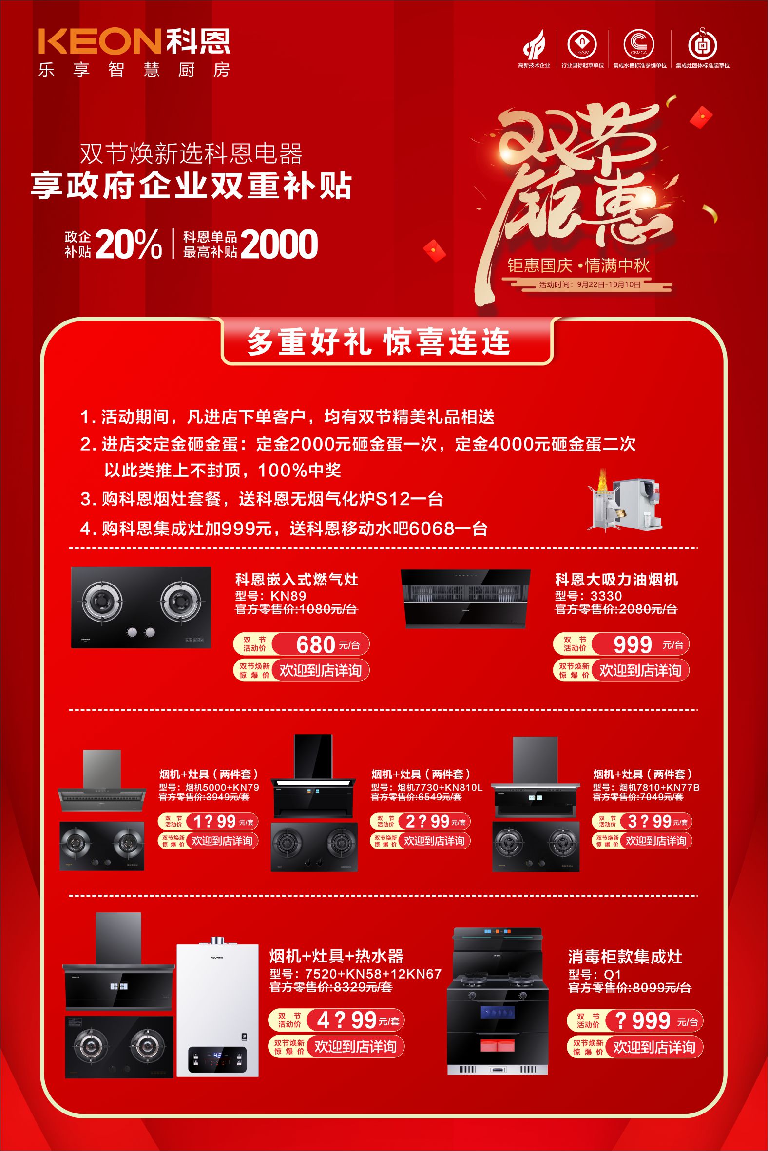雙節(jié)同慶,廚電煥新黃金季,國慶中秋喜相逢,科恩廚電以“鉅惠國慶,情滿中秋”為主題,于9月22日-10月10日開啟限時(shí)狂歡盛典。值此家國同慶之際,雙節(jié)狂歡盛典火熱開啟,讓科技與溫情相伴,讓品質(zhì)生活觸手可及!
