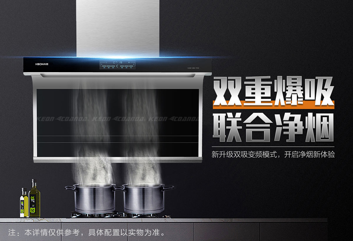 - 頂側(cè)兩吸,多方位爆吸油煙,四面八方不跑煙。