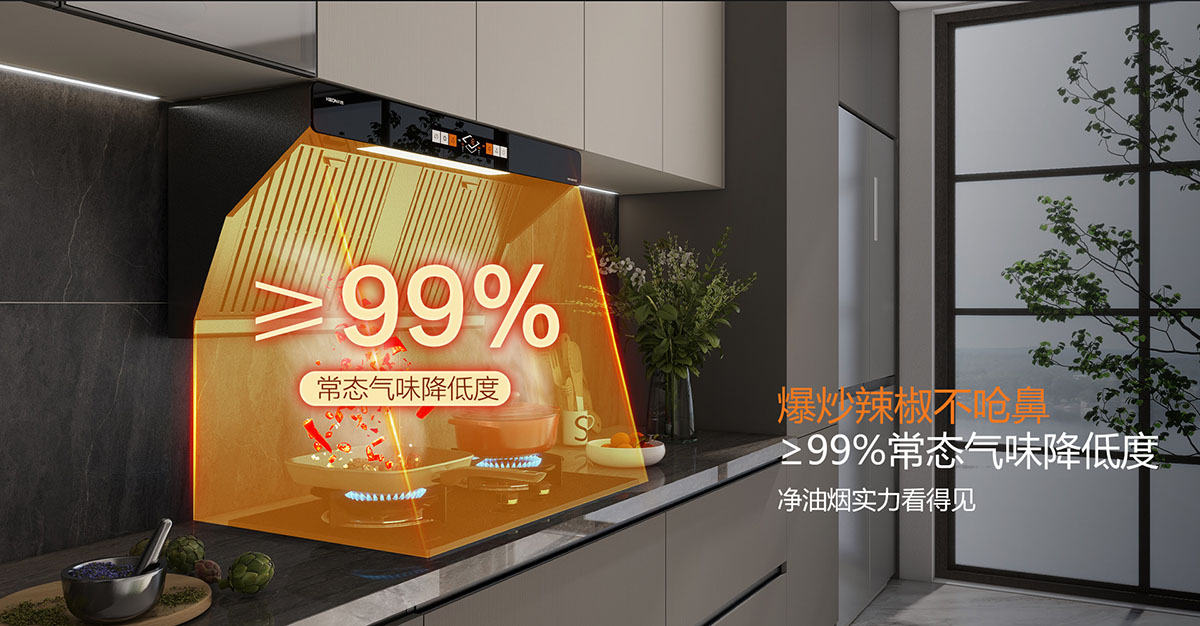 • 颶風大吸力,≥99%常態氣味降低度,爆炒辣椒不嗆鼻