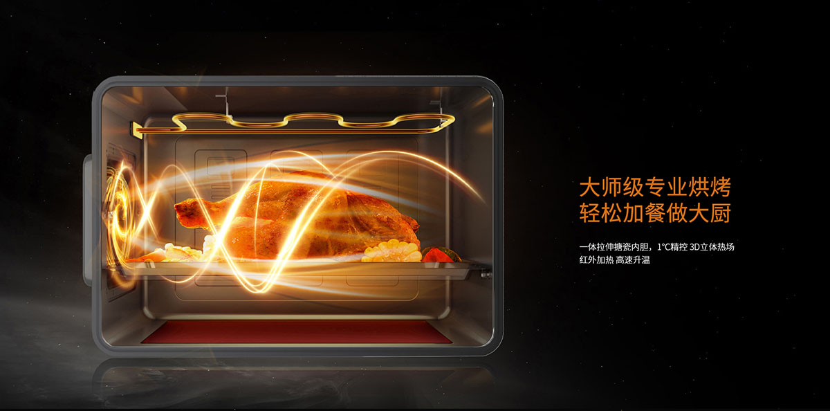 • 遠紅外魔力烤:紅外加熱高速升溫,1°C精控,3D立體熱場