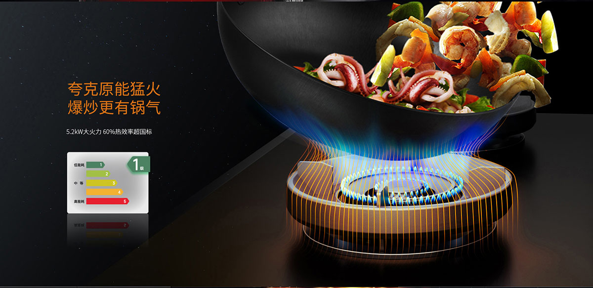 • 一級能效,5.2kW 大火力,全進風設計,燃燒充分,爆炒給力