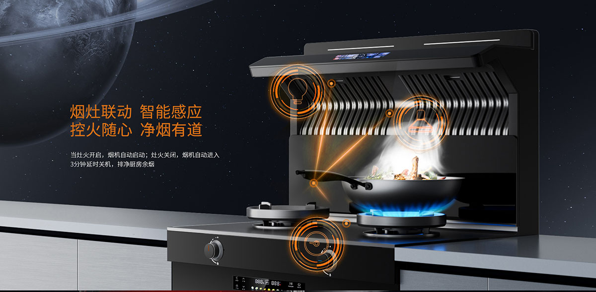 • 煙灶聯動,點火煙機及照明燈自動開啟;三分鐘延時,自動掃除殘留煙油