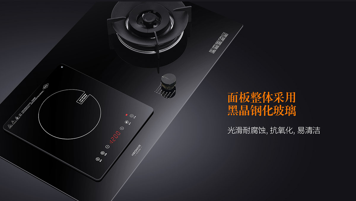 材 質:防爆鋼化玻璃面板、一氣一電灶具、猛火直噴