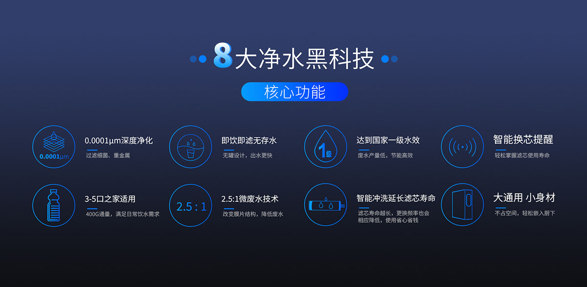 • RO膜長效續航,高精度反滲透,強凈耐用