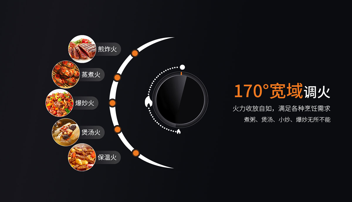 • 170°寬域調火,火力收放自如