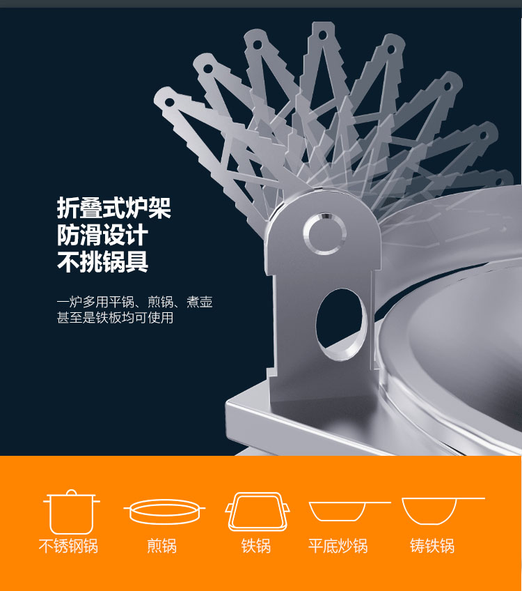 - 飛檐式可調節(jié)防滑鍋架,適配各種鍋具