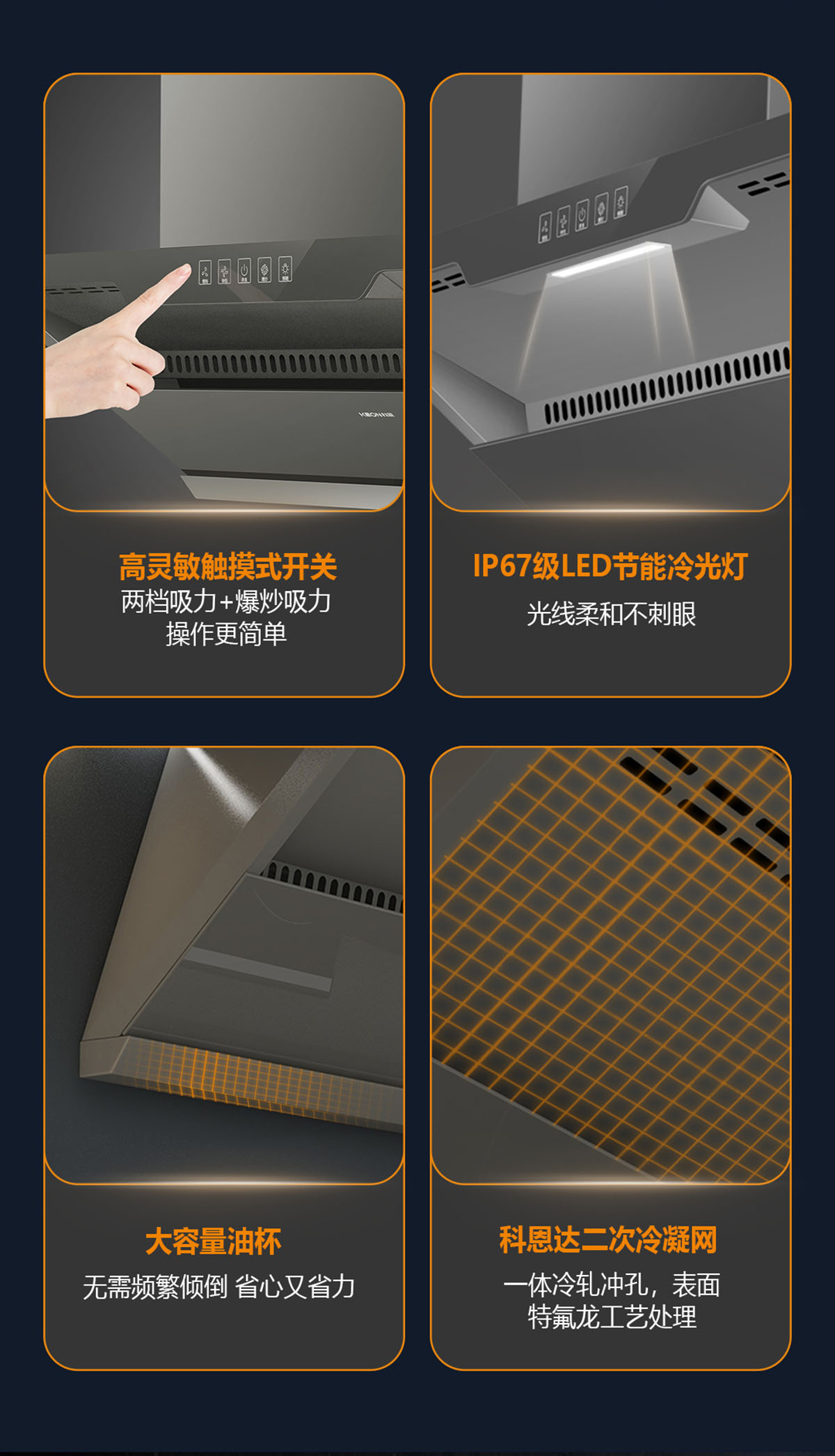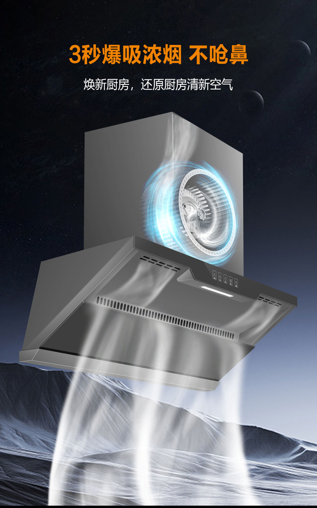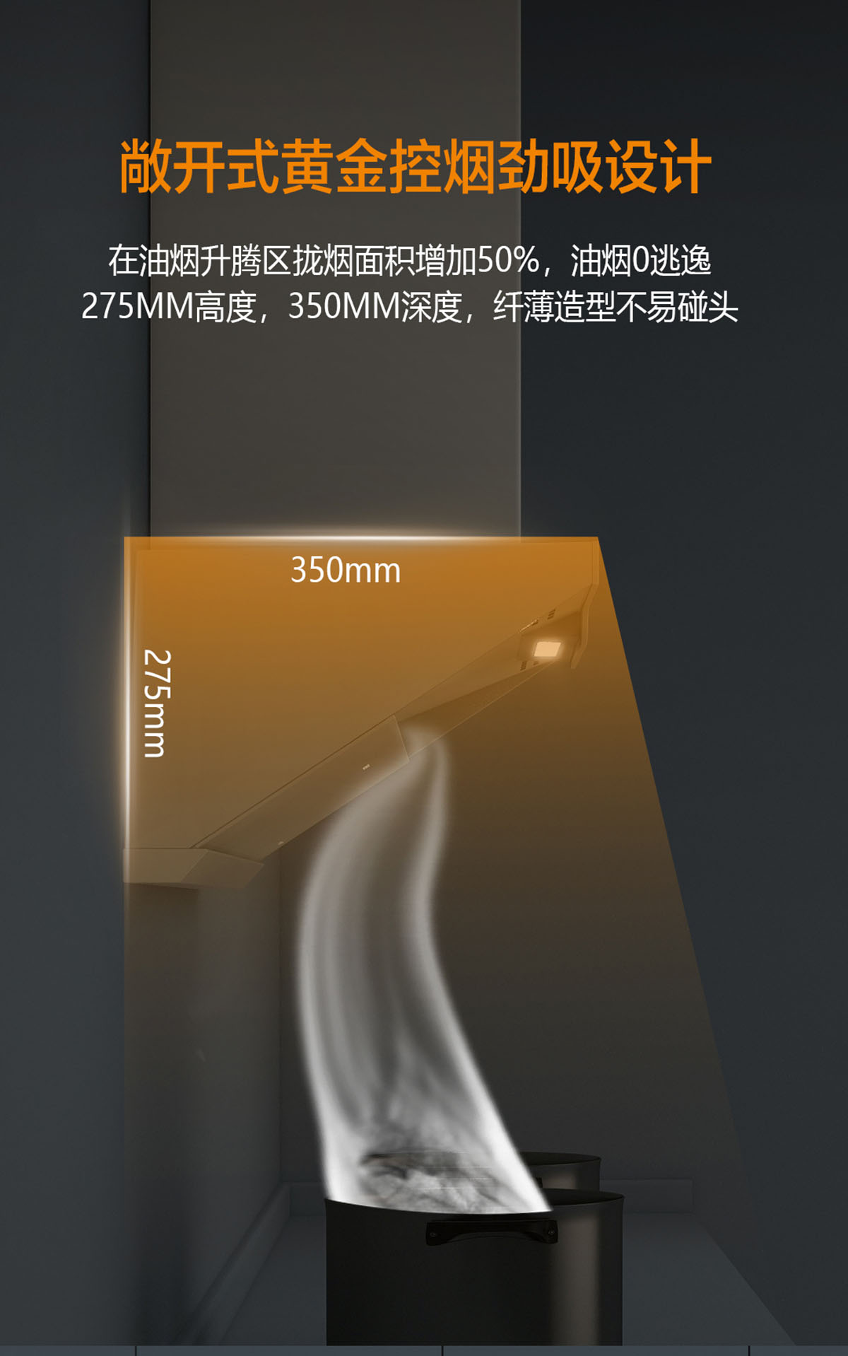 • 黃金控煙勁吸設計,攏煙面積增加50%,油煙0逃逸