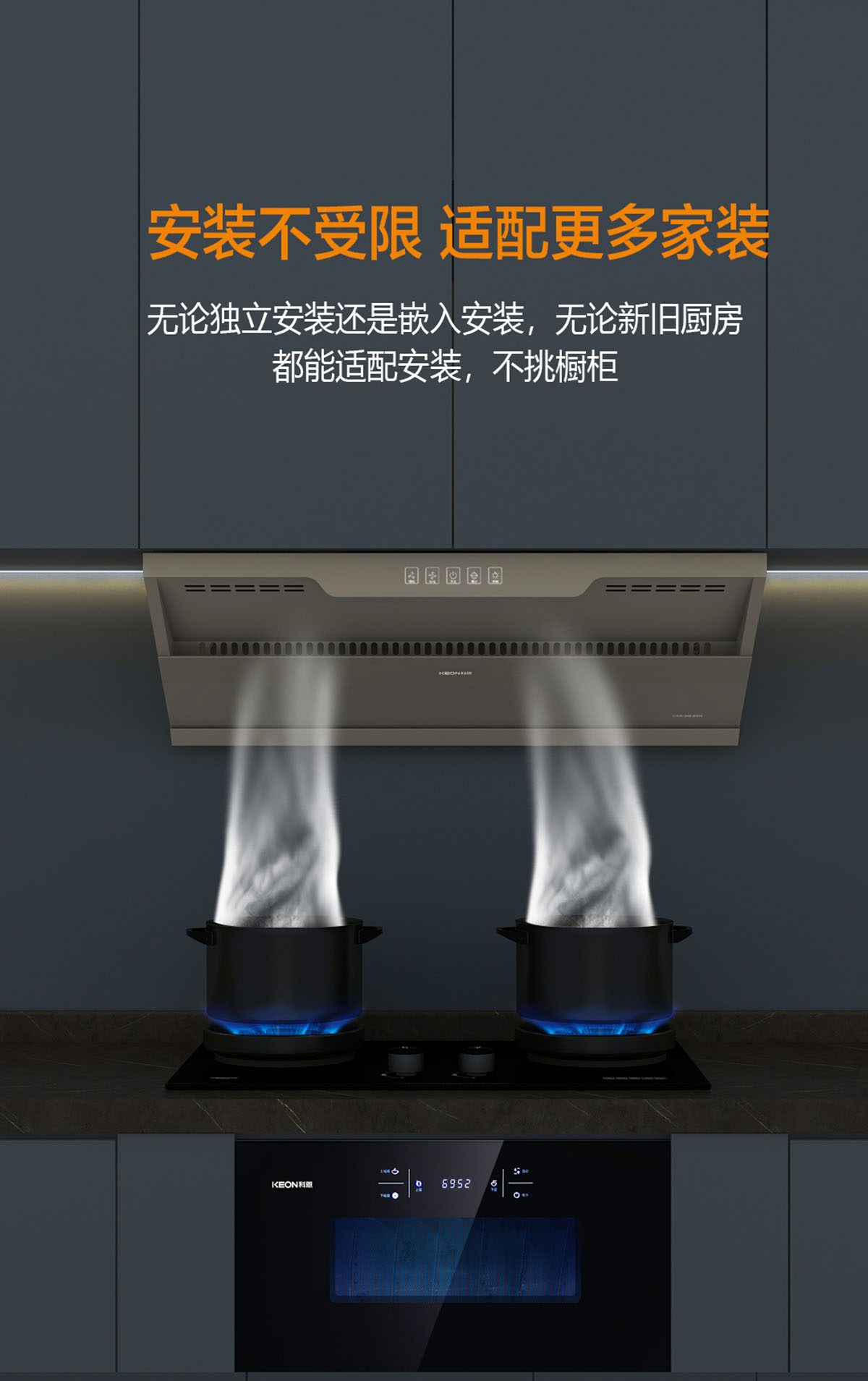 • 歐近式煙機,平行嵌入,輕松嵌裝,櫥柜美觀不突兀