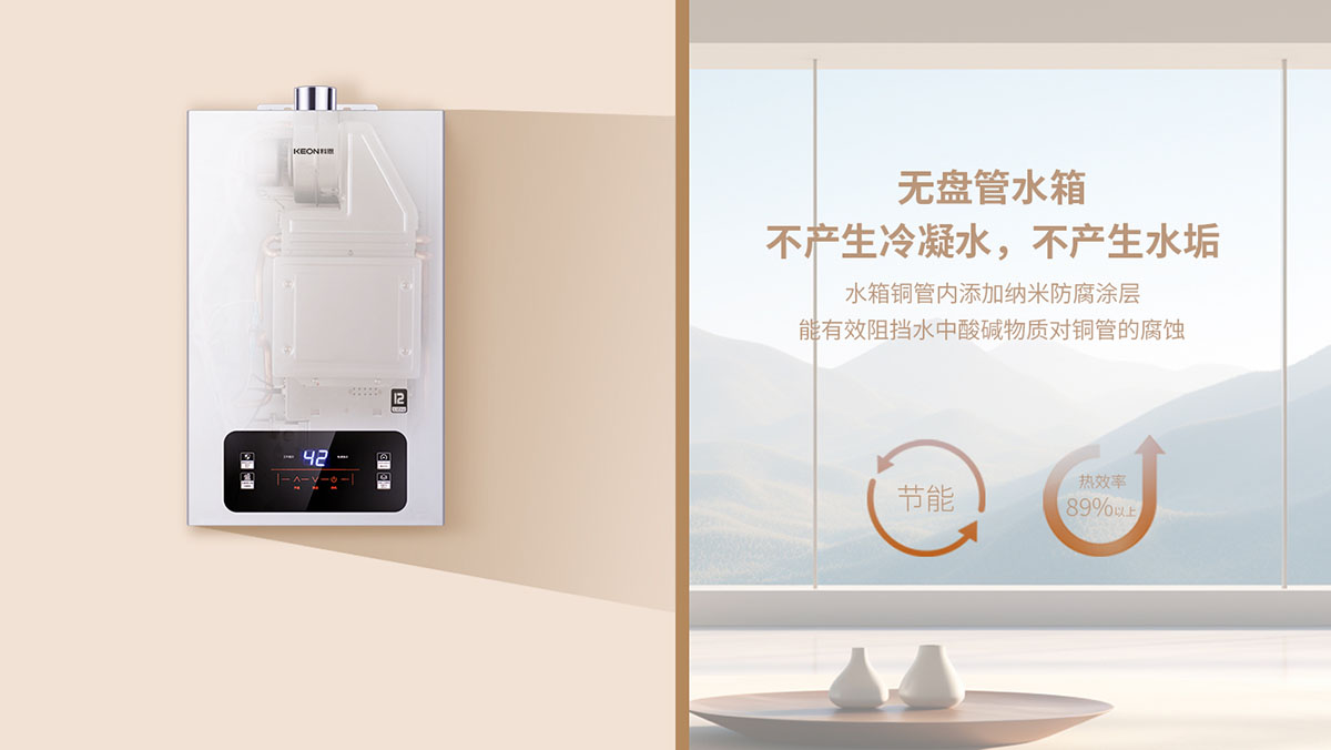 - 無(wú)氧銅水箱環(huán)保、節(jié)能、高效,熱效率高達(dá)89%以上