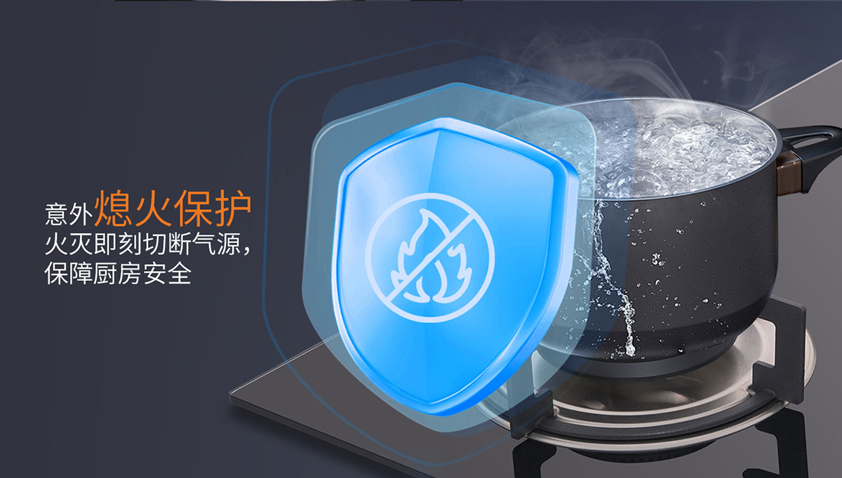 • 意外熄火保護,火滅即刻切斷氣源,保障廚房安全