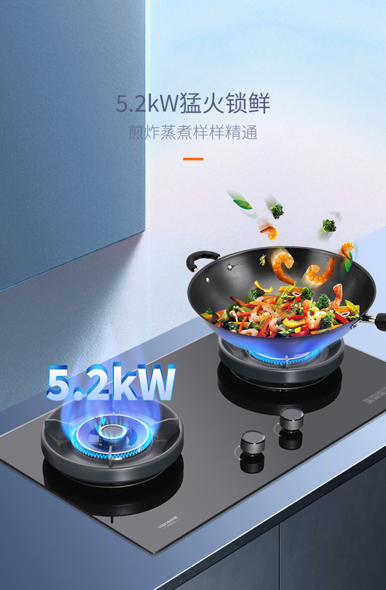 • 5.2KW猛火爆炒鍋氣足,激發食材色香味